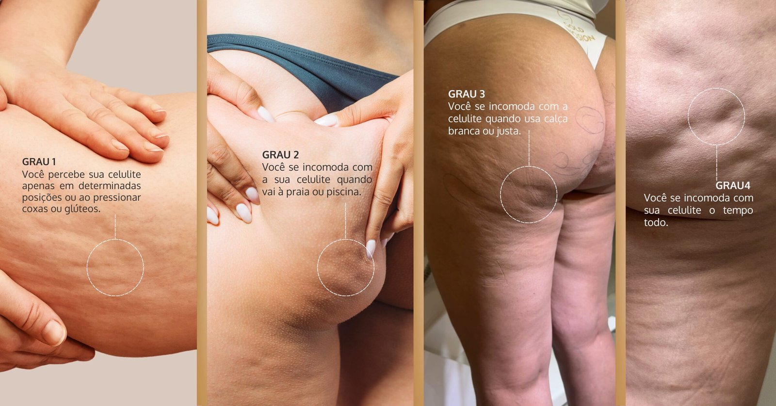 Além disso, os diferentes graus de celulite podem ser identificados de acordo com as seguintes características: